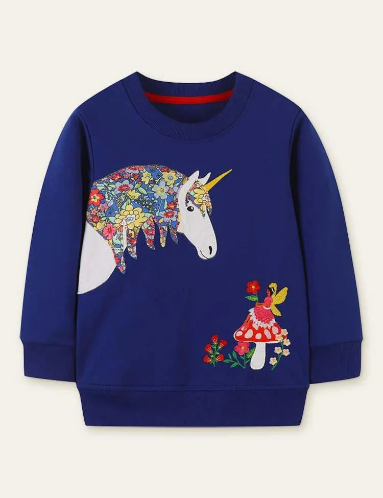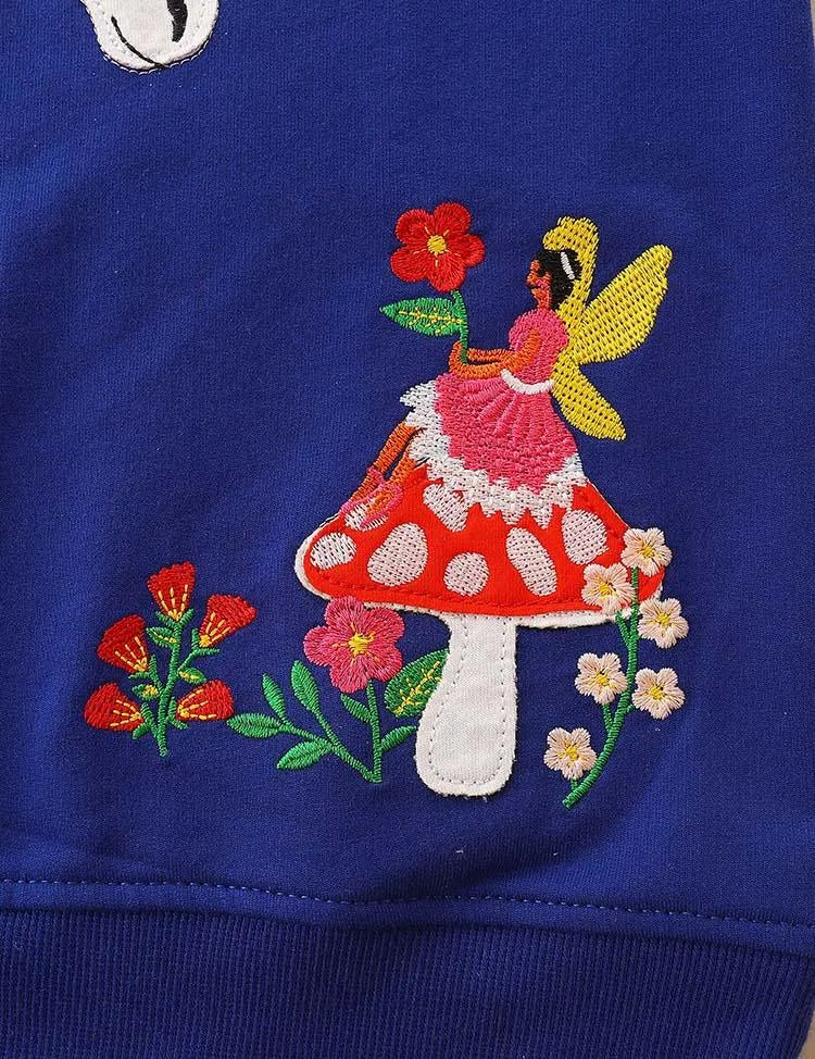 Floral Horse Appliqué Mushroom Embroidered Sweatshirt