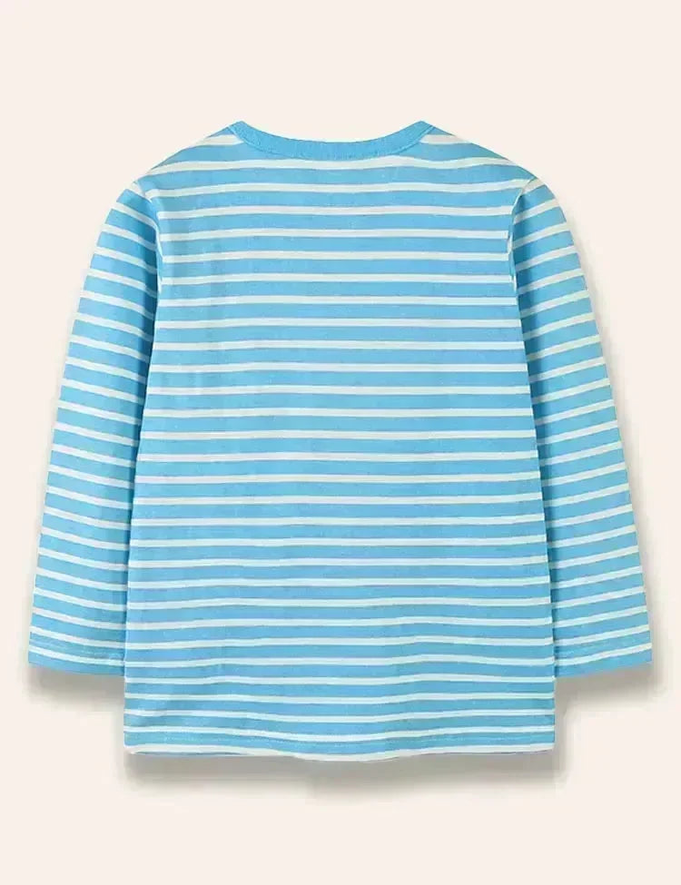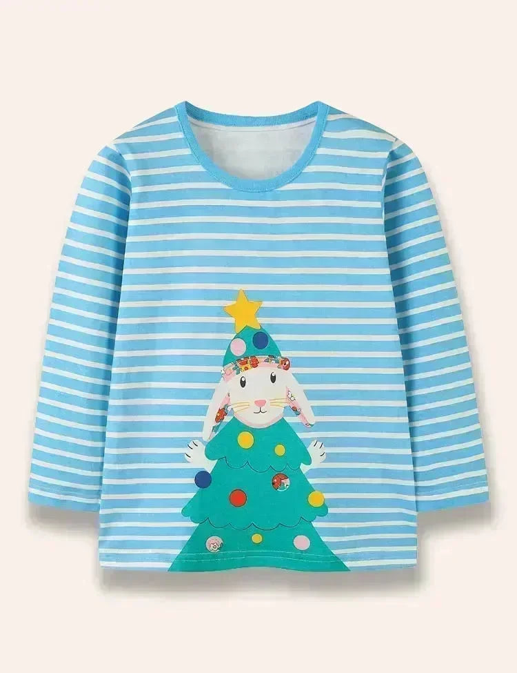 Christmas Bunny Printed Long Sleeve Striped T-Shirt