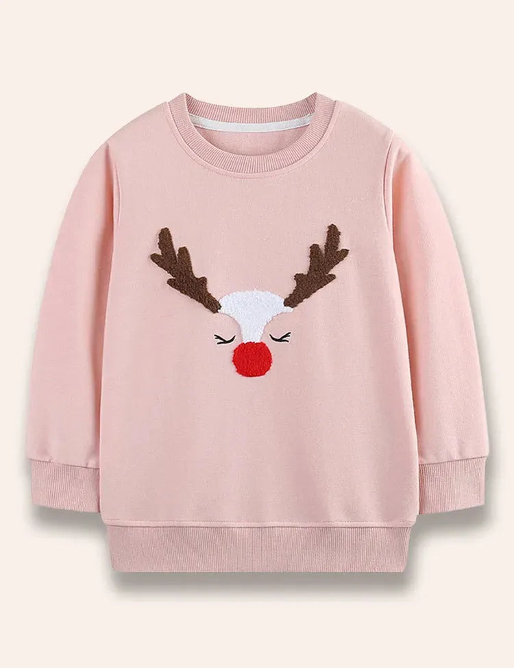 Christmas Fluffy Reindeer Embroidered Sweatshirt