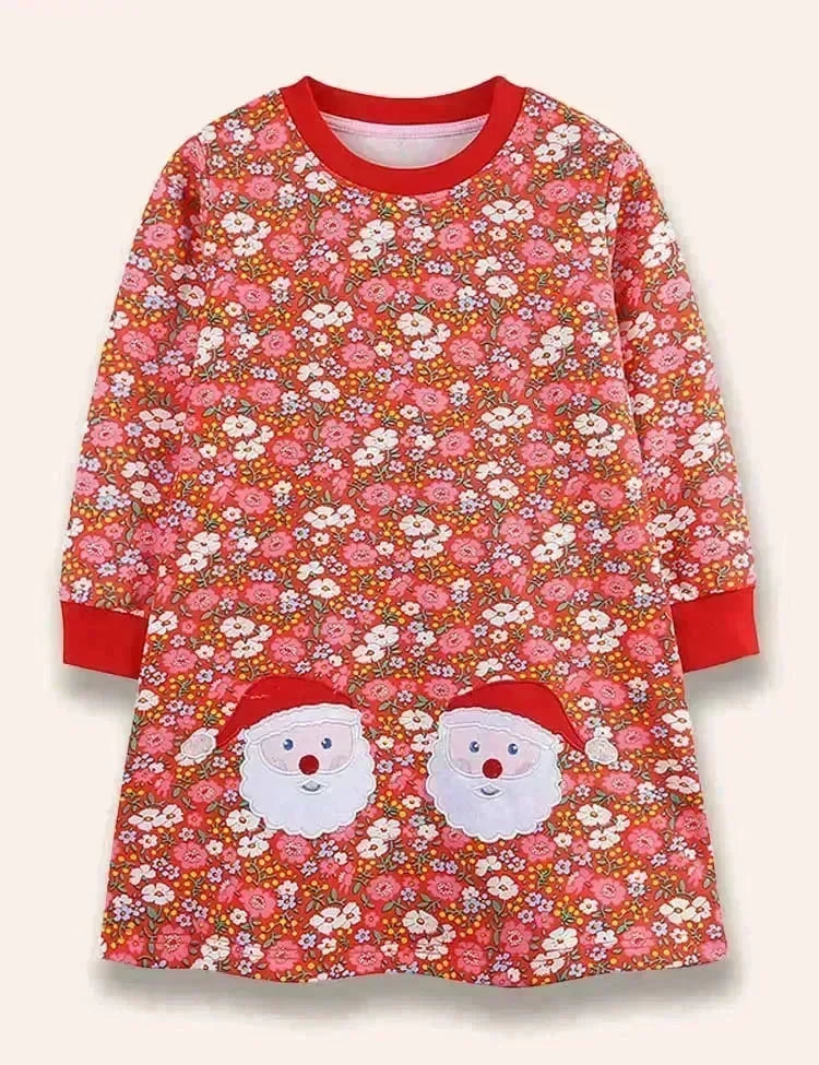 Christmas Santa Claus Appliqué Floral Dress