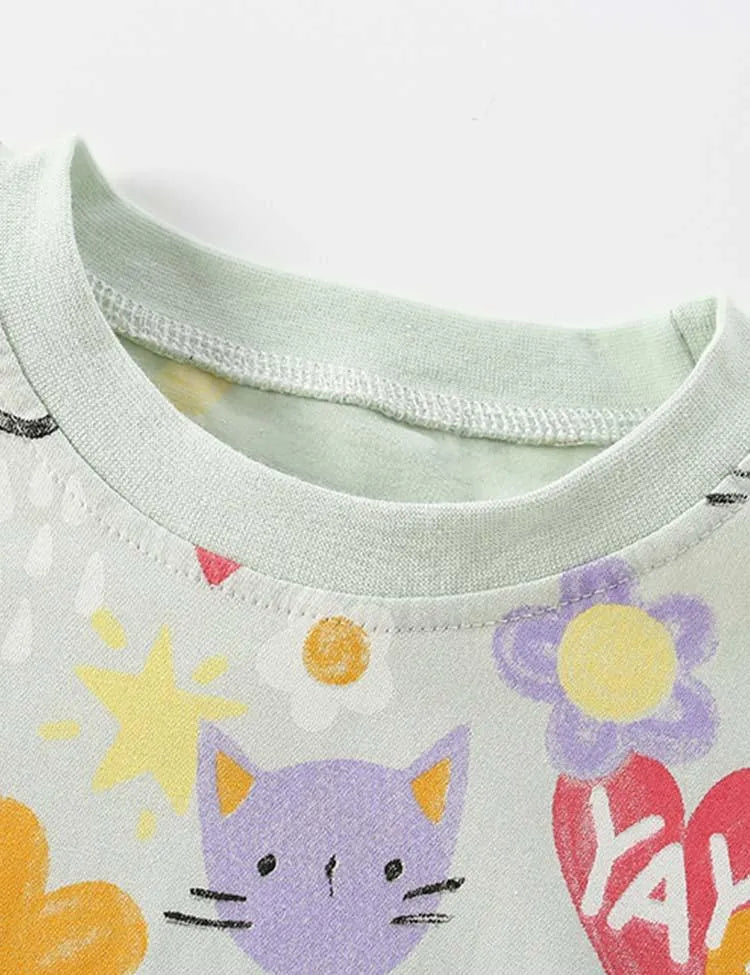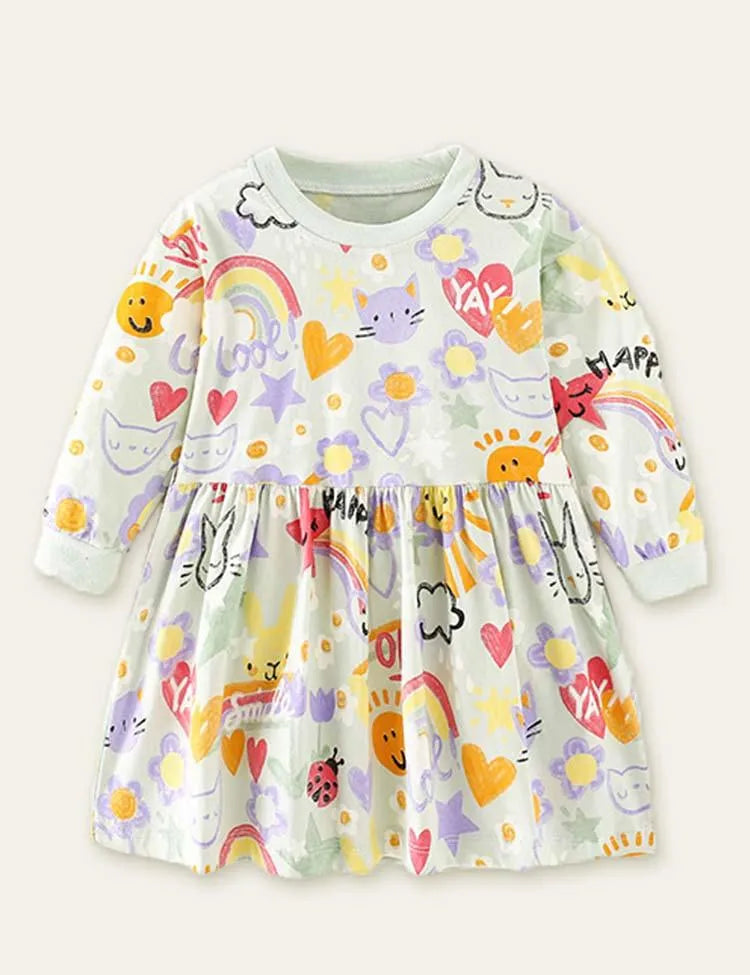 Rainbow Cartoon Full Printed Long Sleeve Dress
