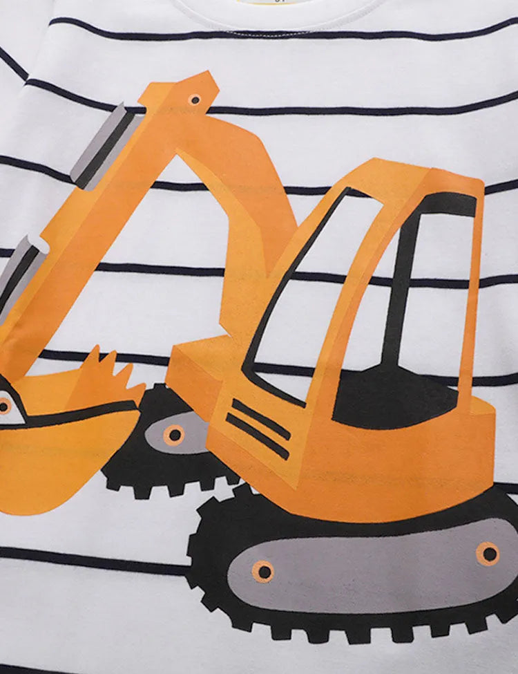 Excavator Printed Striped T-Shirt