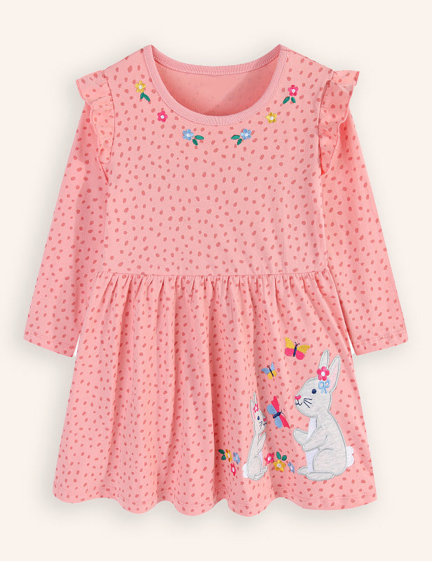 Rabbit Butterfly Embroidered Long Sleeve Dress