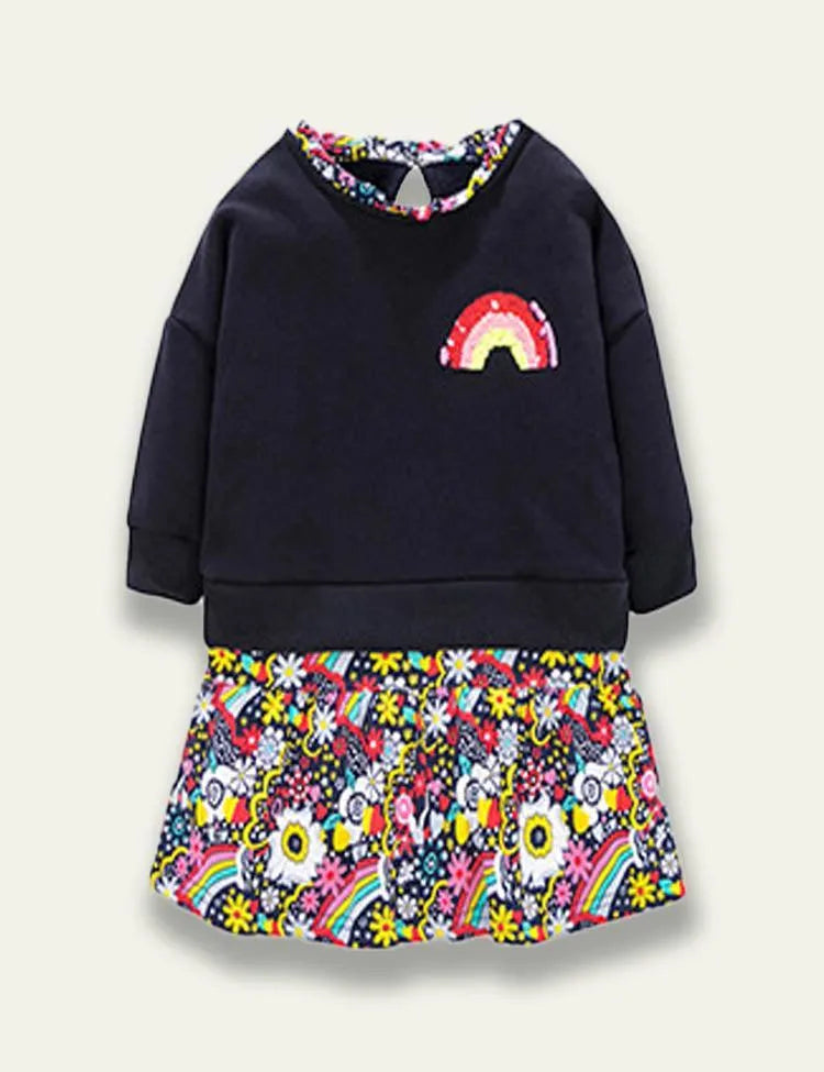 Floral Rainbow Sweatshirt Dress