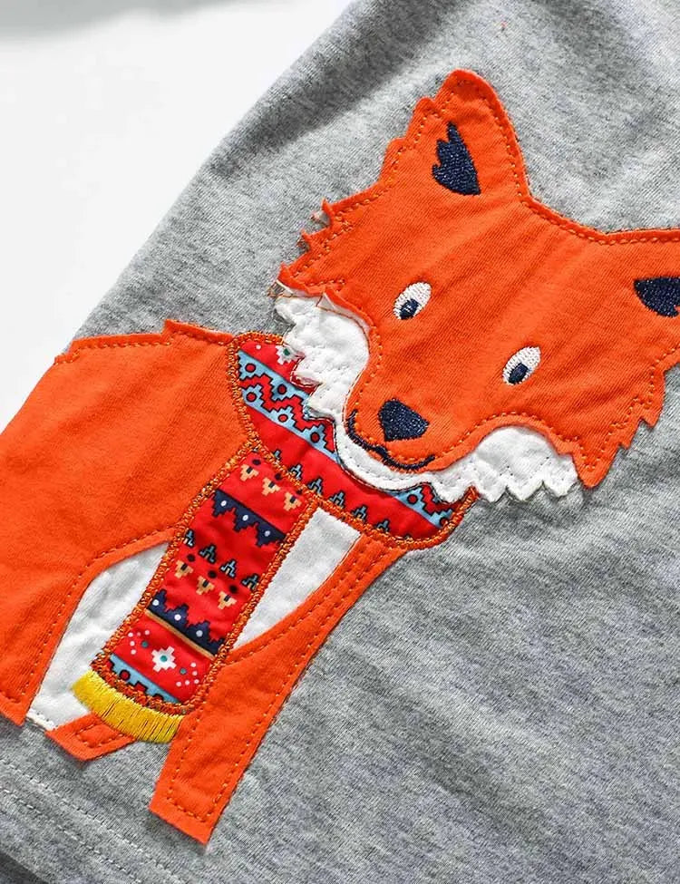 Cute Fox Appliqué Long Sleeve T-Shirt