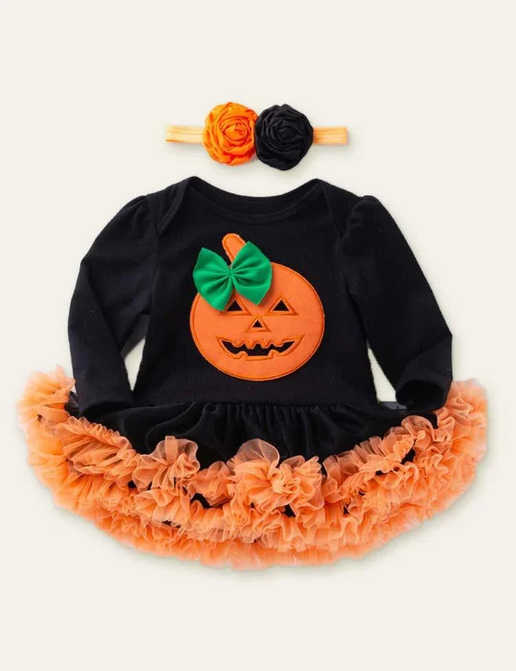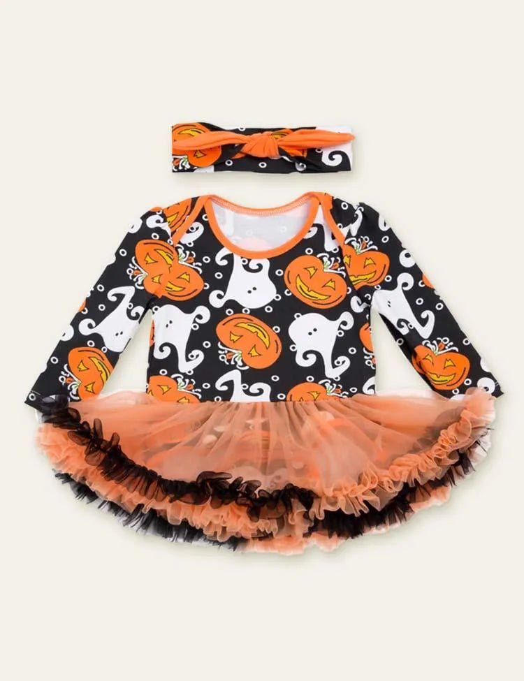 Halloween Ghost Printed Pumpkin Embroidered Mesh Romper