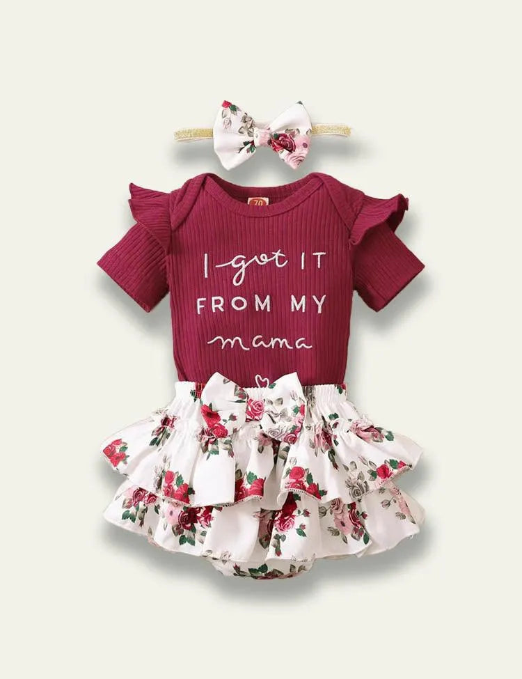 Letter Printed Romper+Floral Skirt