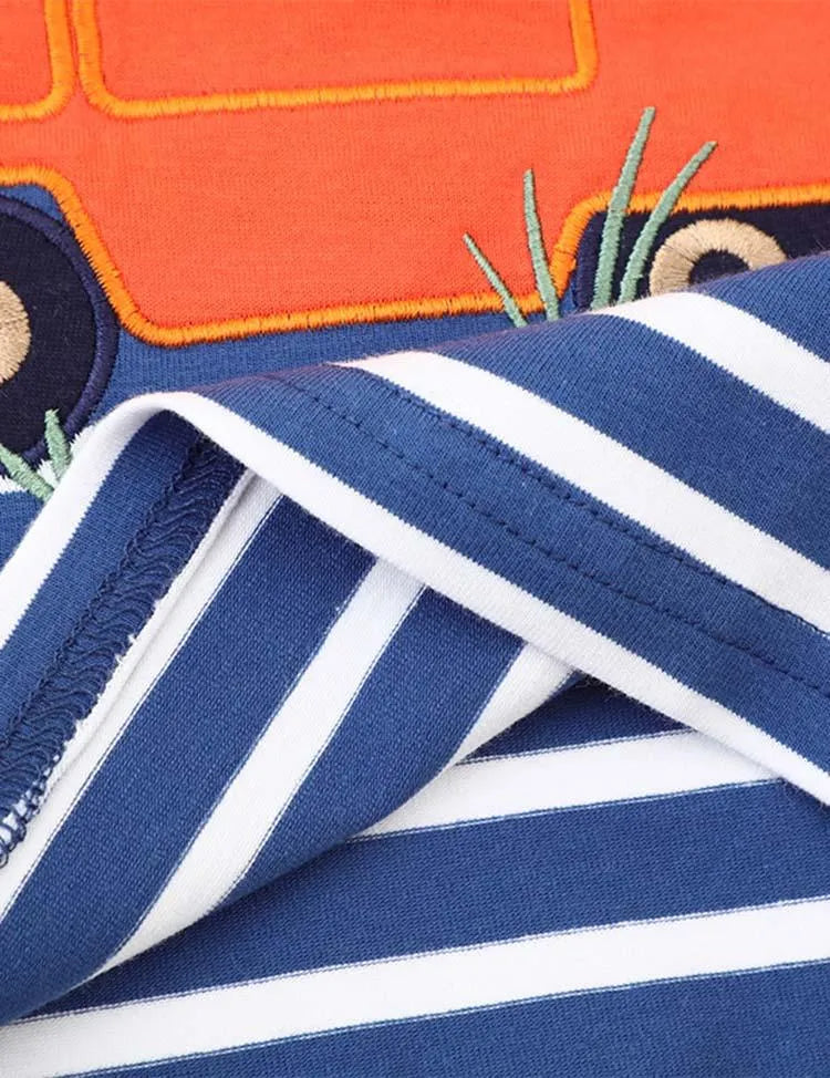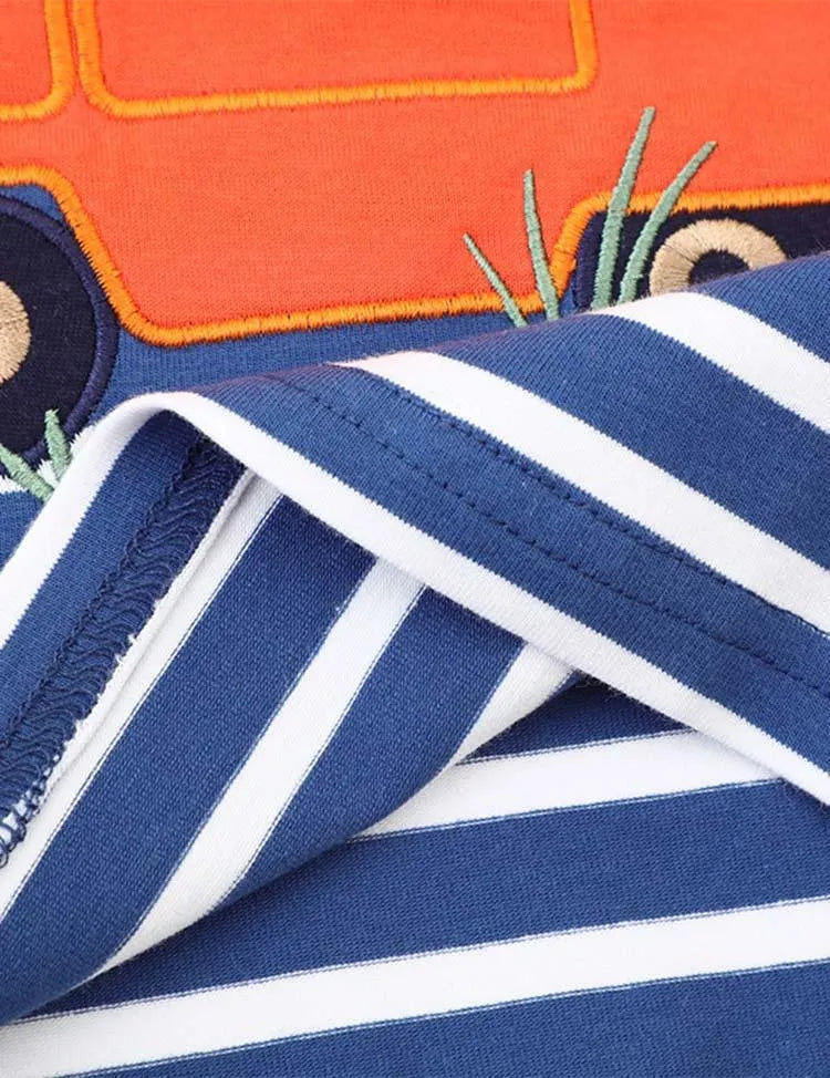 Animal Bus Appliqué Striped Long Sleeve T-shirt