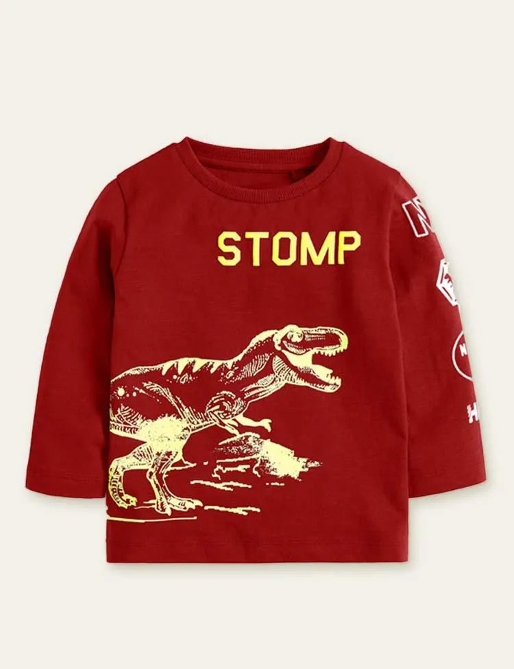 Dinosaur Printed Long-Sleeved T-shirt