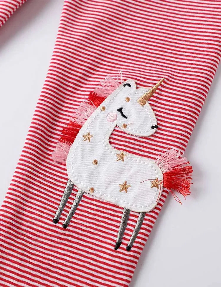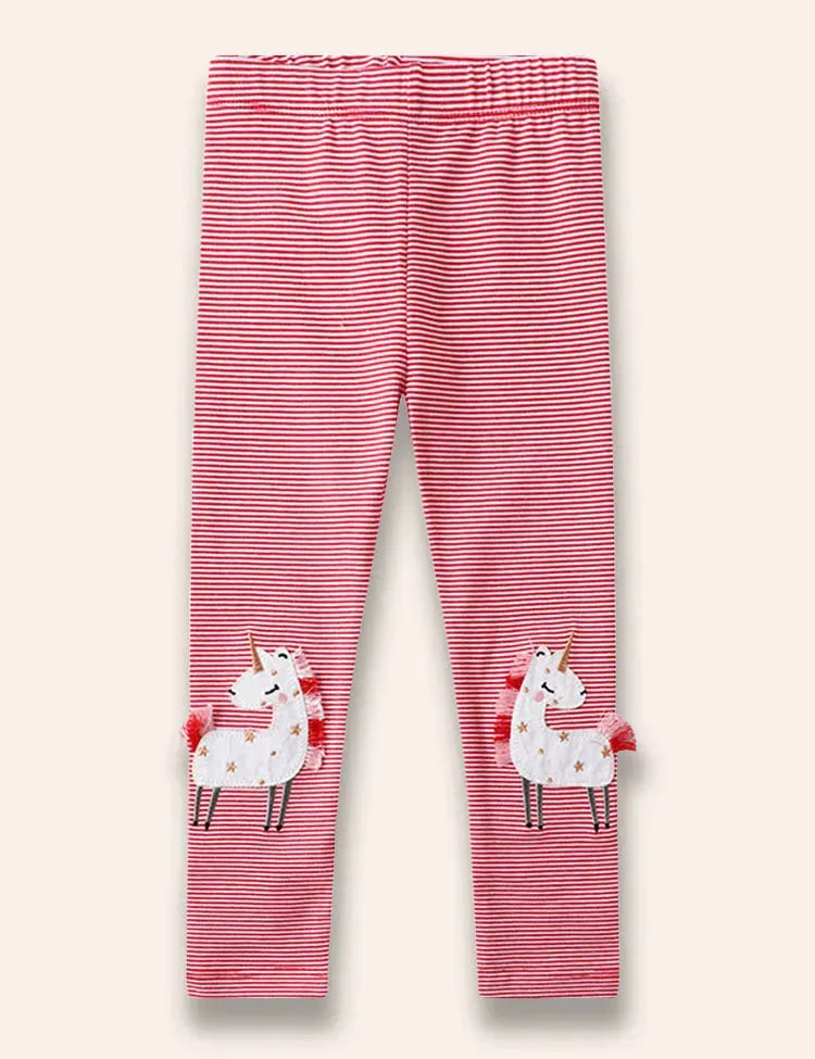 Unicorn Appliqué Striped Leggings