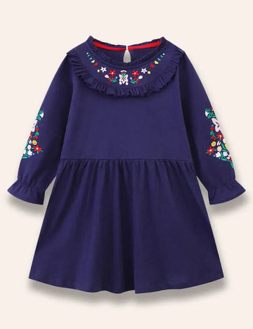 Flower Embroidered Ruffled Dress