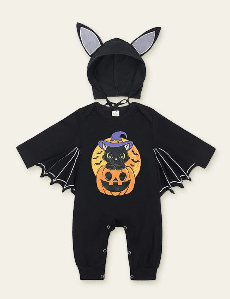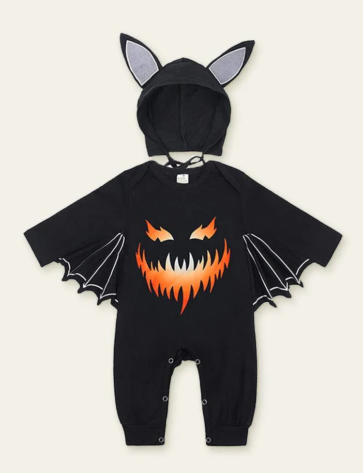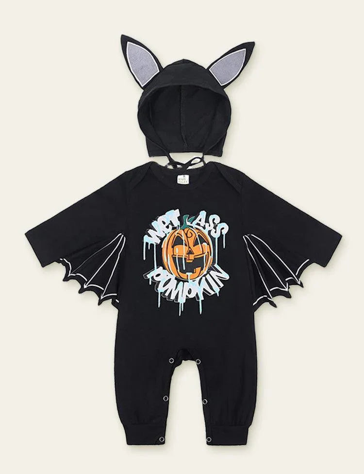 Halloween Pumpkin Bat Printed One-Piece Romper