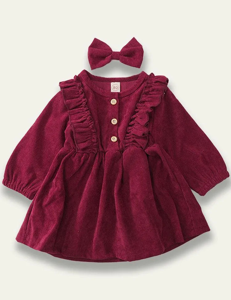 Sweet Corduroy Long Sleeve Dress