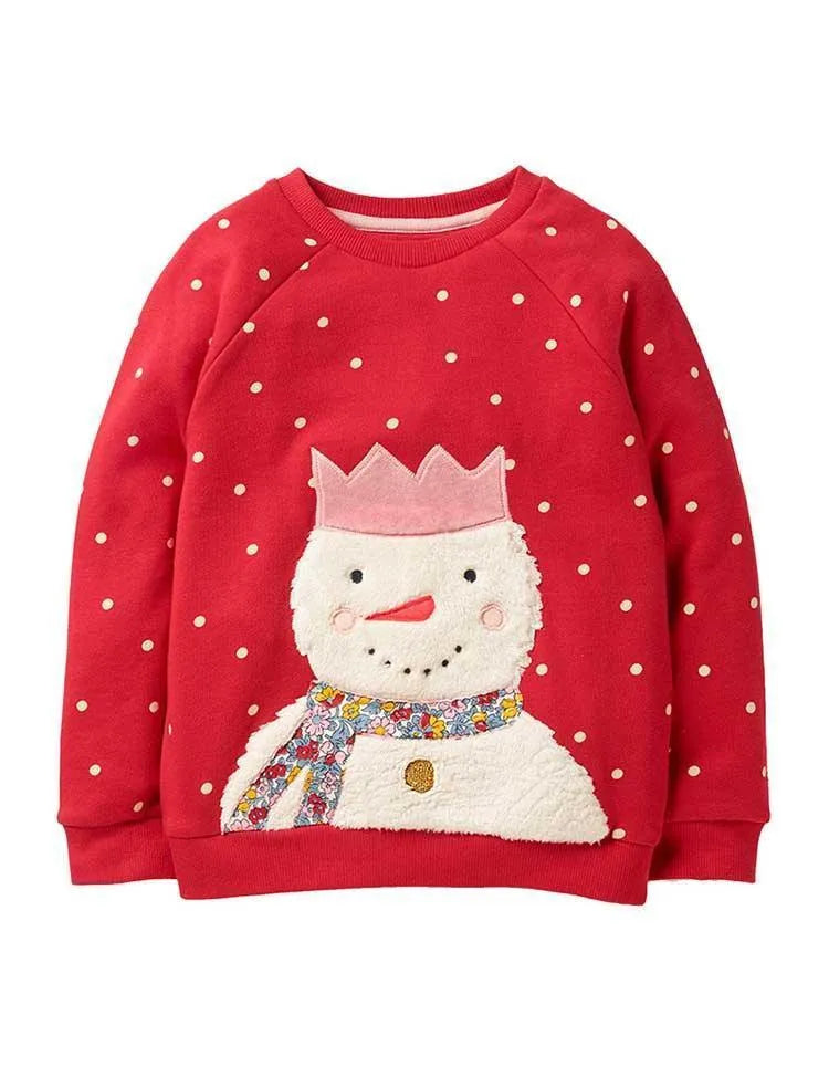 Plush Snowman Appliqué Dot Sweatshirt