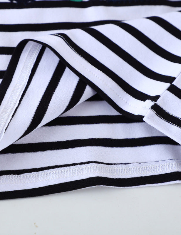 Construction Car Applique Striped Long Sleeve T-Shirt