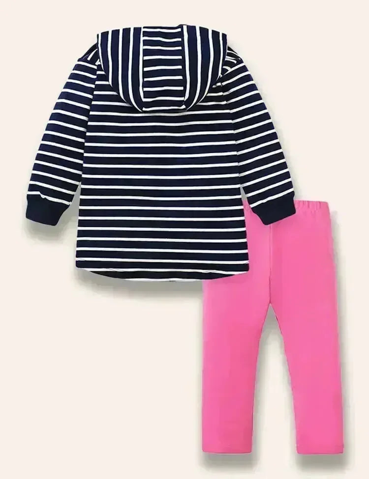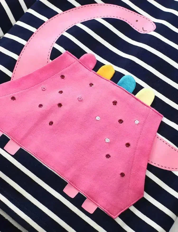 Cute Dinosaur Appliqué Hooded Striped Sweatshirt Set