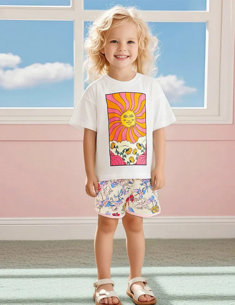 Floral Sun Printed T-Shirt Set