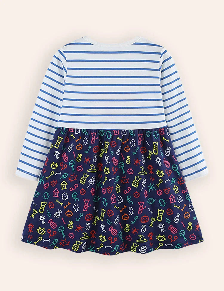 Halloween Pumpkin Appliqué Long Sleeves Dress