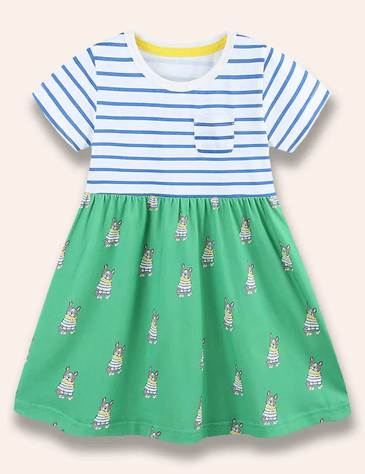 Little Doggy Printed Striped Dress