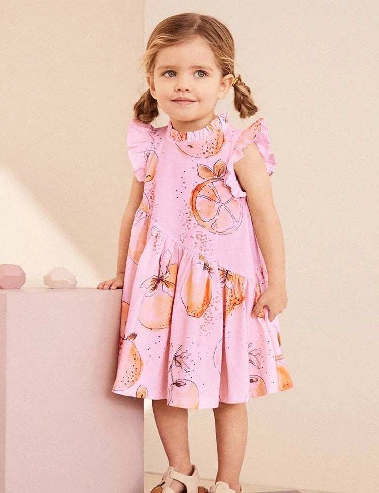 Orange Printed Ruffled Dress