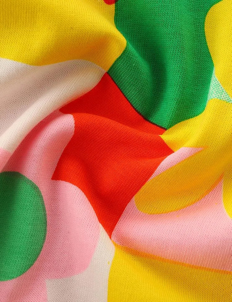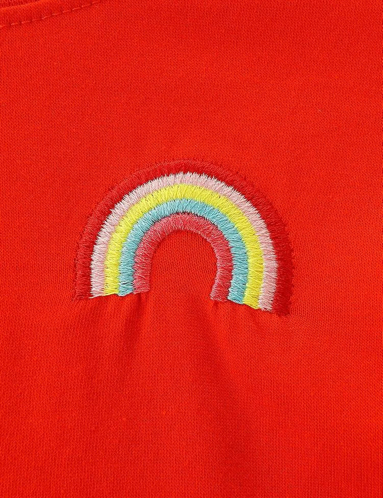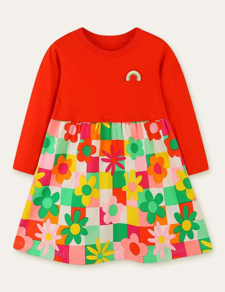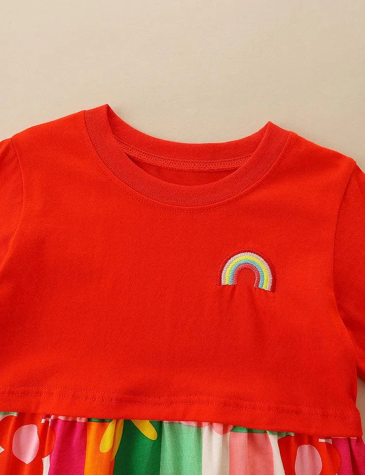 Rainbow Embroidery Floral Printed Long Sleeve Dress