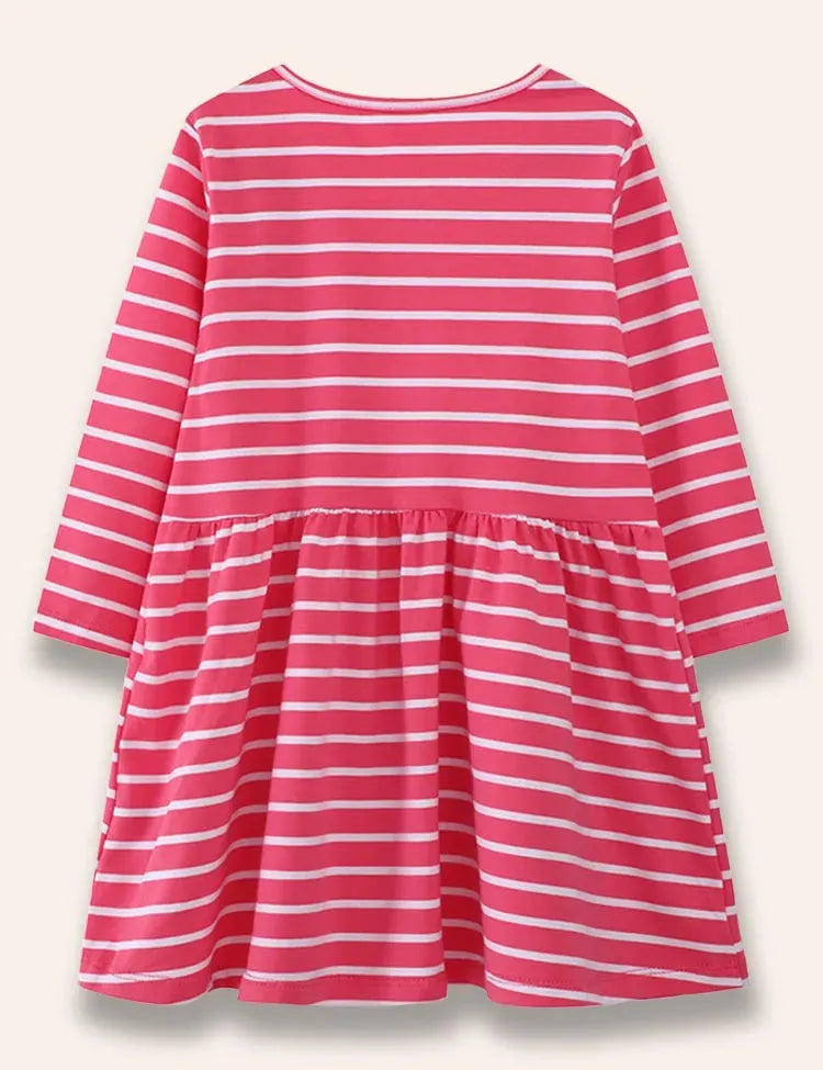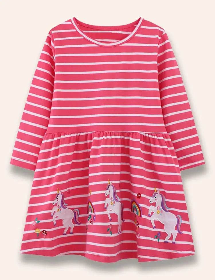Rainbow Unicorn Appliqué Striped Dress
