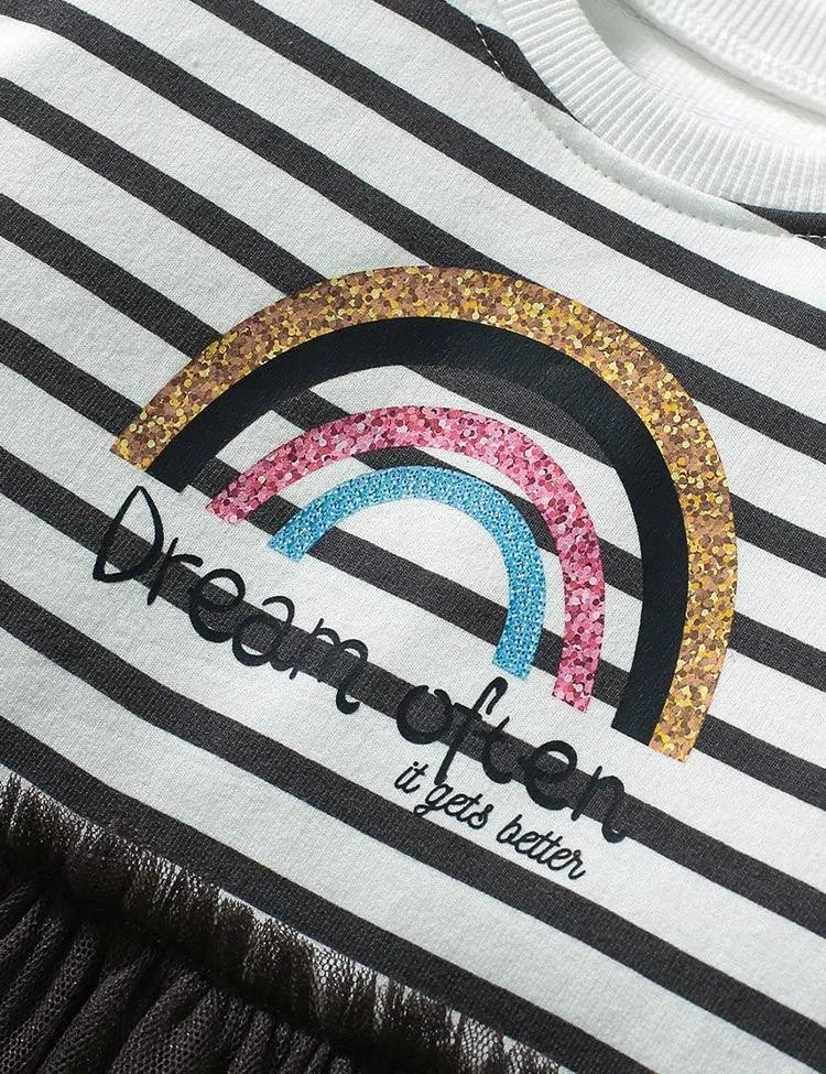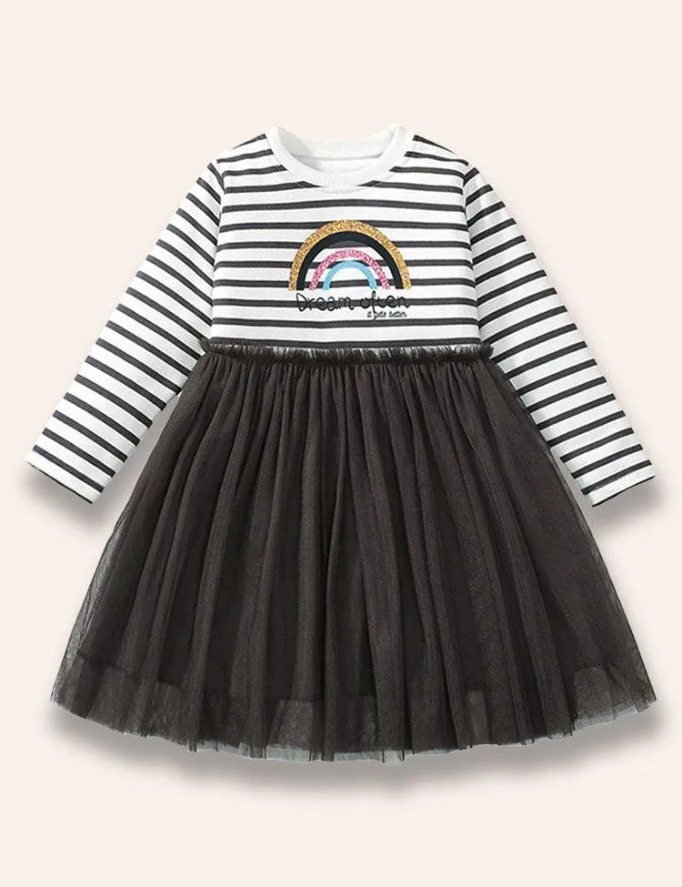 Shining Rainbow Long Sleeve Striped Tulle Dress