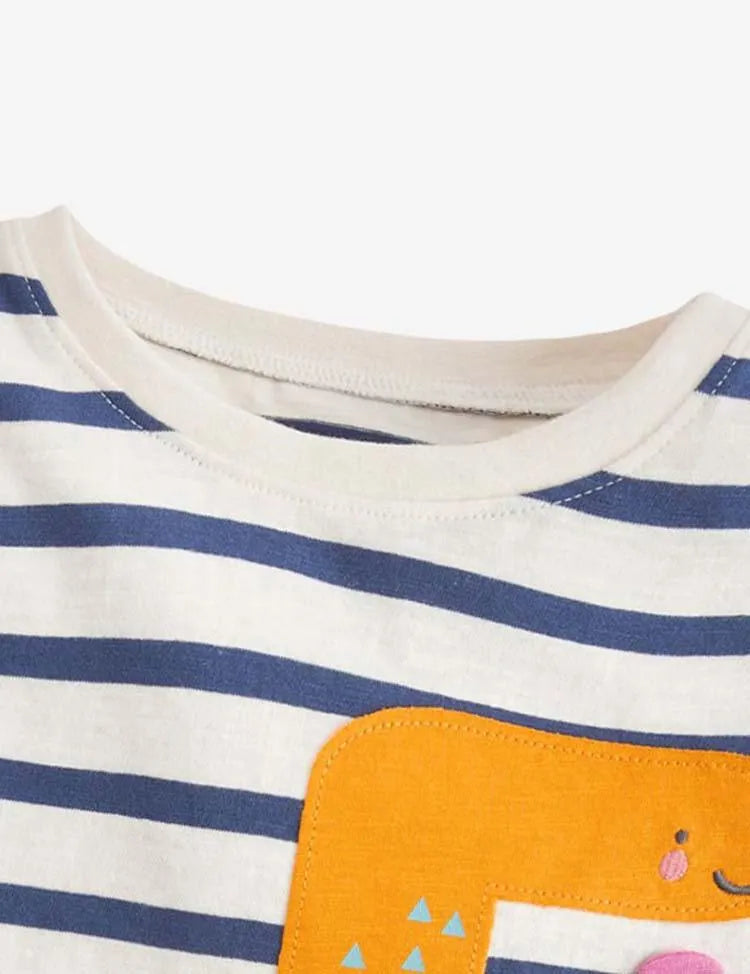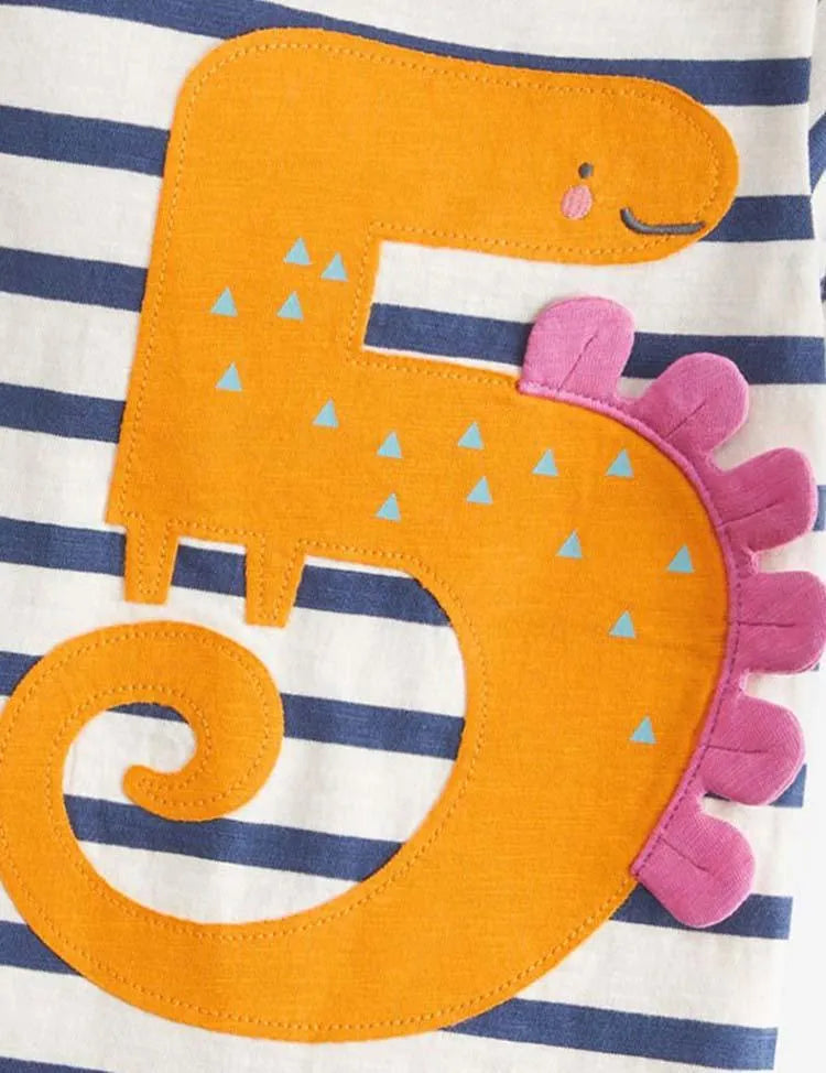 Dinosaur Digital Appliqué Striped T-shirt