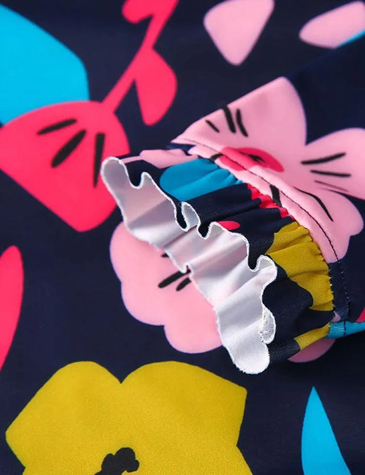 Long Sleeved Floral One Piece Swimsuit