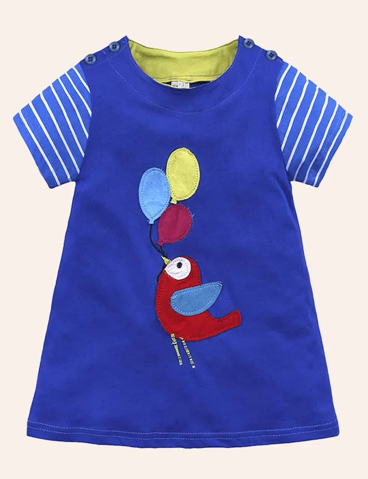 Today Only - Turtle Appliqué Short-Sleeved Striped Dress